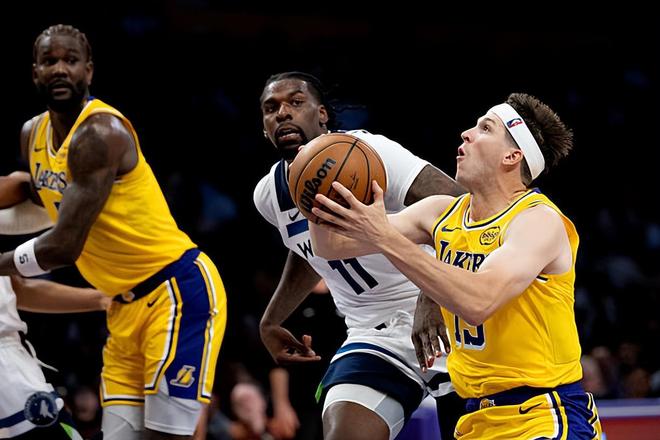 本场比赛中,湖人的先发后场大将奥斯汀-里夫斯(Austin Reaves)的表现算得上是令人刮目相看。里夫斯全场出场36分35秒,投篮15中9,三分线外5中2,罚球5中5,得到了25分7篮板11助攻的准三双数据,还有1次失误和1次犯规,正负值为+17。里夫斯在进攻端展现出了全面的得分能力,他的突破能力出色,他也具备一定的投射能力,他通过各种方式拿下了大量的分数,而且他在传球和组织进攻方面也是起到了很好的效果。里夫斯在卢卡-东契奇(Luka Doncic)休息时能够扮演好球队后场核心的角色并且保证球队的进攻处于流畅的状态,而在和东契奇同时出场时,两人的双核组合更是威风八面。里夫斯的一系列出色表现也是球队能够比较顺利地战胜对手的重要因素。