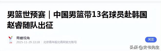 青瞳视角《男篮世预赛|中国男篮带13名球员赴韩国 赵睿随队出征》发布时间:2025.11.29